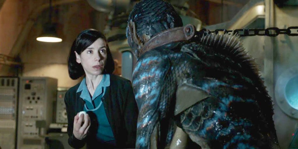 Meet Elisa Esposito (Sally ‘Mary Brown in Paddington’ Hawkins), a mute janitor working at a top-secret government research institution. Her life is one of simple pleasures such as watching TV with her older neighbour Giles, boiling eggs or taking baths.
